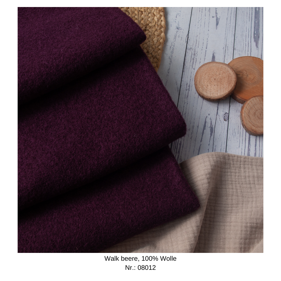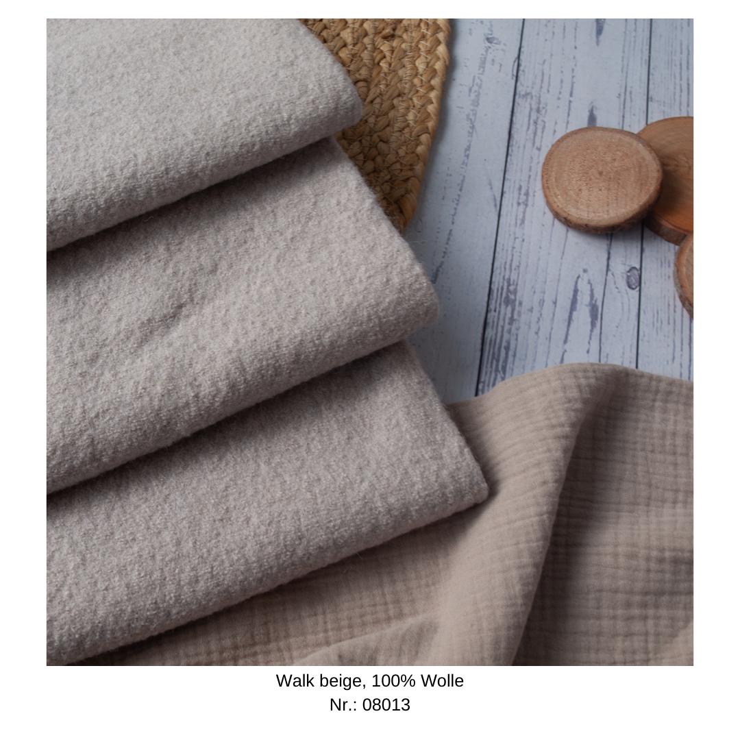 Zusammensetzung: außen: Wollwalk aus 100% Wolle, innen: nach Wahl des Stoffes
